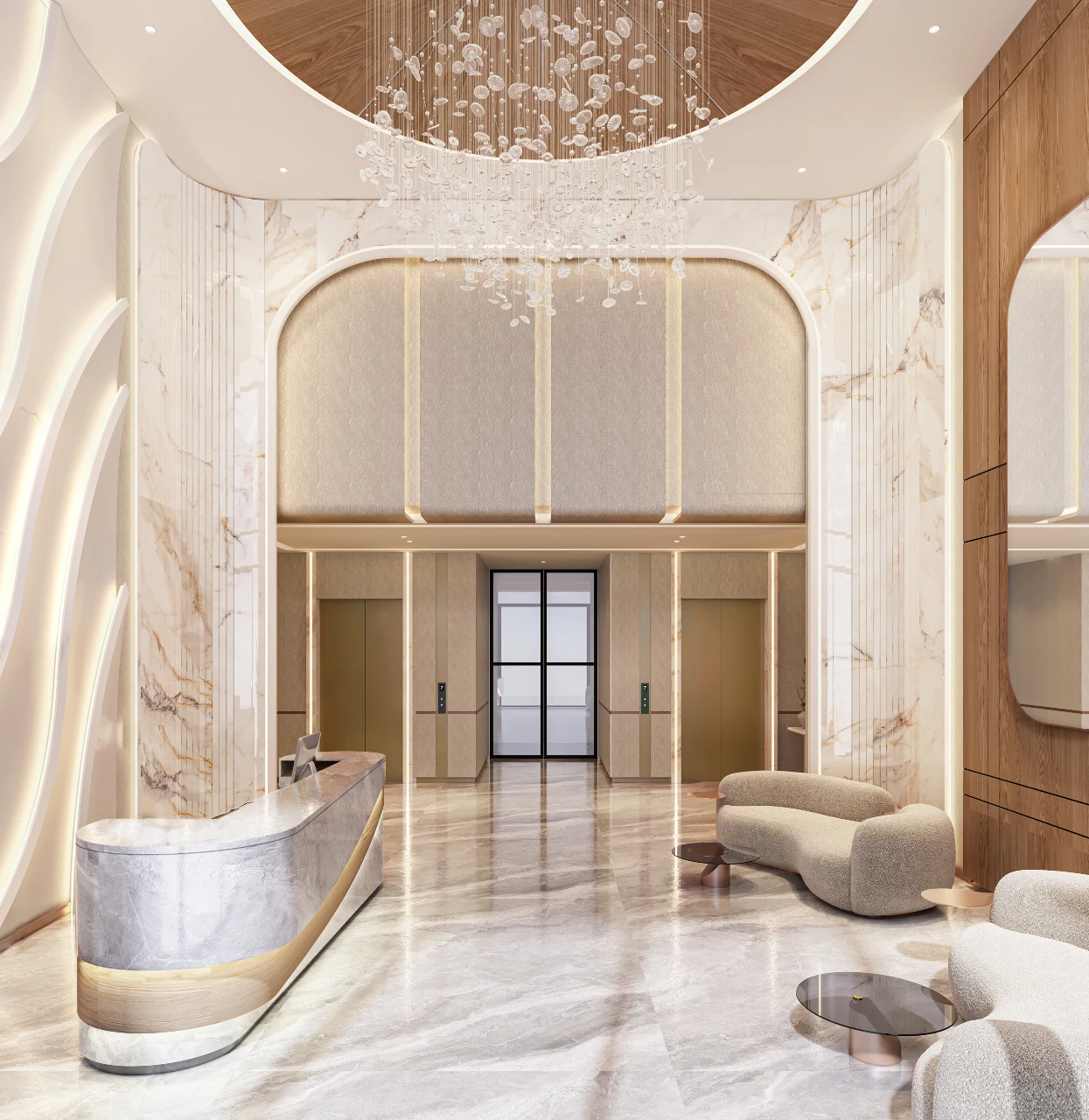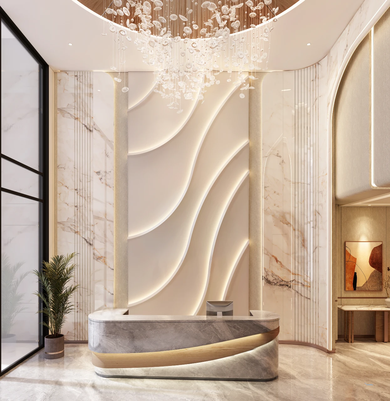Majestic Double-Height Front Lobby Entrance