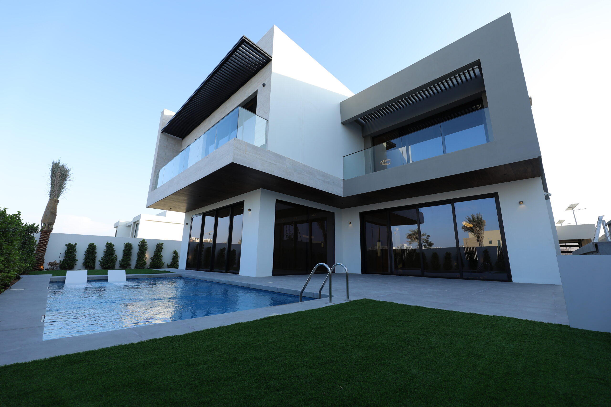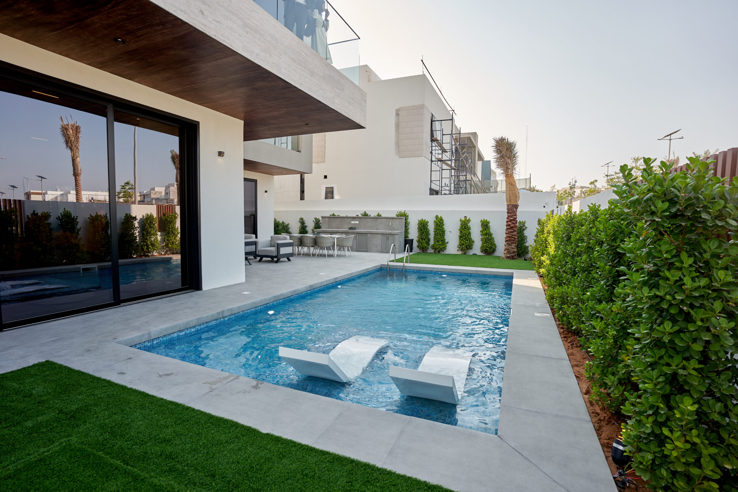 Acube Abodes Realty is thrilled to present a brand-new, custom-built luxurious villa in Al Furjan, located in South Dubai, offering breathtaking views of the Dubai Marina Skyline and Jumeirah Lake Towers. This independent villa spans 6,700 BUA and features four ensuite master bedrooms on the top floor, along with one ensuite master bedroom and office space on the ground floor. The kitchen areas are elegantly designed and fully equipped with high-end services, complemented by an intelligent Jaquar world lighting system. Residents can enjoy relaxation and leisure with a private swimming pool.